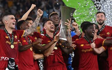Lorenzo Pellegrini solleva la coppa della Conference League