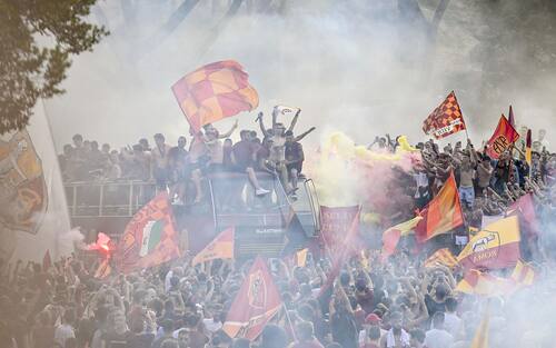 L'annuncio in mattinata della Roma, attraverso i propri canali, regala un'altra giornata di festa dopo il trionfo in Conference League. Due pullman scoperti con giocatori e staff iniziano la sfilata nel delirio dei tifosi alle 16.50: un tragitto iniziato alle Terme di Caracalla, destinazione Circo Massimo