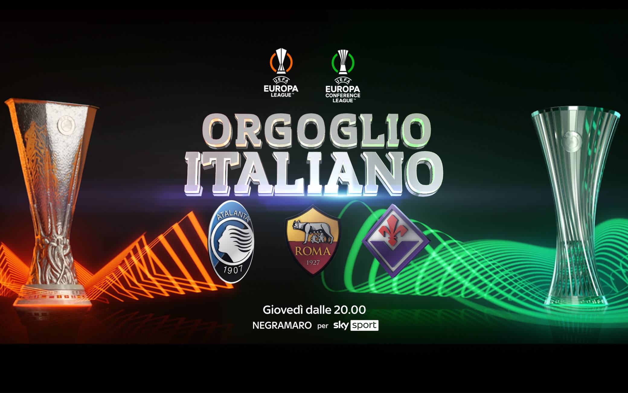 L'andata delle semifinali di Europa League e Conference League è sulle note di "Luna piena" dei Negramaro (Sugar Music). La band, dopo la partecipazione alla 74^ edizione del Festival di Sanremo con “Ricominciamo Tutto”, è stata a Berlino nel mese di marzo, per registrare il nuovo album negli Hansa Studios. Il videoclip di “Luna piena” ritrae i Negramaro proprio in una delle storiche sale degli Studios, che hanno ospitato U2, David Bowie, Depeche Mode, Iggy Pop, REM e altri importanti artisti della storia della musica mondiale. Il gruppo si prepara, a breve, ad un importante ritorno al live, in un tour evento negli Stadi, che li vedrà esibirsi il 15 giugno allo Stadio Diego Armando Maradona di Napoli, il 18 giugno al Bluenergy Stadium Stadio Friuli di Udine, il 22 giugno allo Stadio San Siro di Milano, il 3 luglio allo Stadio Franco Scoglio (San Filippo) di Messina e il 6 luglio allo Stadio San Nicola di Bari.