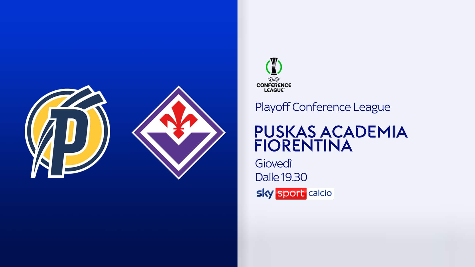 La Fiorentina si gioca l'accesso ai gironi di Conference League contro gli ungheresi della Puskas Akademia. Doppio confronto, primo match il 22 agosto al Franchi; gara di ritorno il 29 agosto, in trasferta (ore 21 alla Felcsut-Pancho Arena). Appuntamento oggi per i viola di Raffaele Palladino alla ricerca- per il terzo anno consecutivo- di un pass per la Conference League. In diretta dalle ore 19.30 con lo studio con Mario Giunta e Federico Zancan. La partita sarà visibile su Sky Sport Calcio e in streaming su NOW. Telecronaca Massimo Marianella; commento Lorenzo Minotti