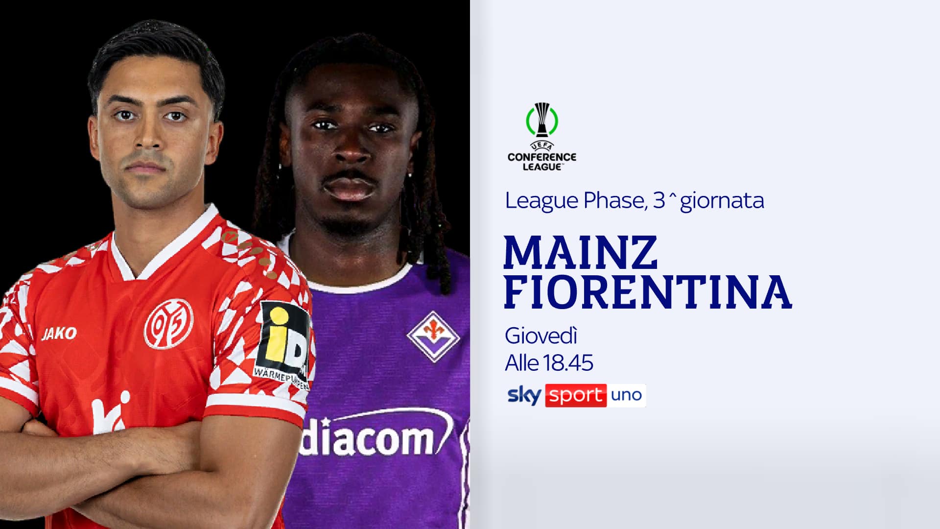 guida tvOggi alle 18.45 in campo anche la Fiorentina in Conference League: i viola affrontano in trasferta il Mainz, live su Sky Sport Uno, Sky Sport 252 e in streaming su NOW