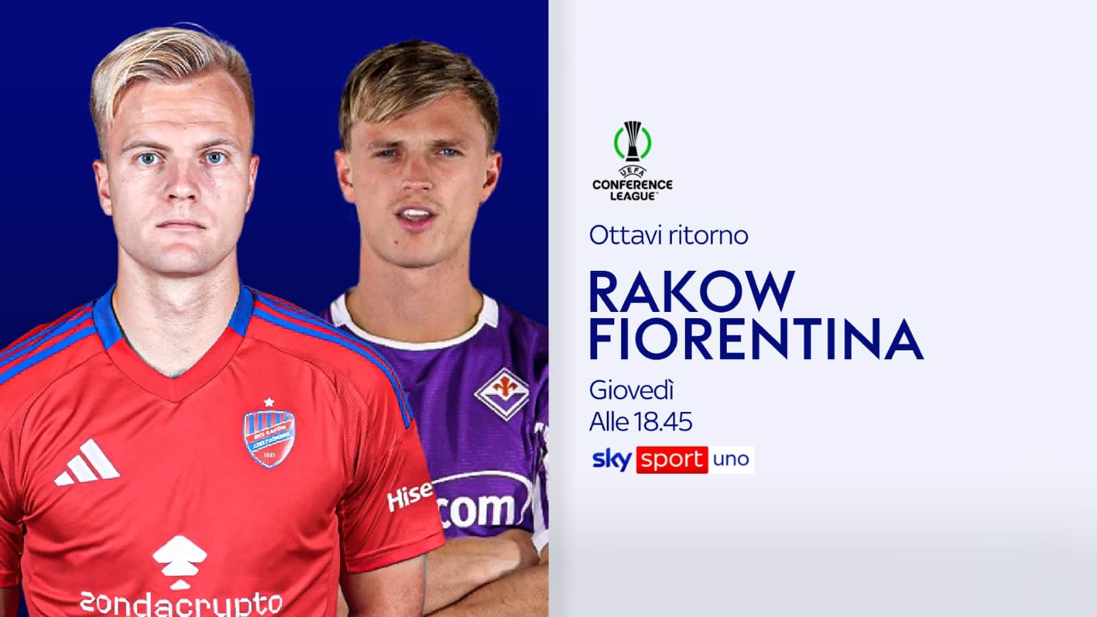 guida tvGiovedì 19 marzo il ritorno degli ottavi di finale di Conference League su Sky e in streaming su NOW. Le partite live da seguire anche con Diretta Gol. Una l'italiana in campo: alle 18.45 Raków Częstochowa-Fiorentina. Approfondimento pre e postpartita affidato a Studio Europa e Conference League con i giornalisti e i top talent di Sky Sport