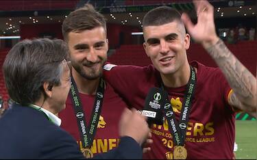 Siparietto tra Mancini e Cristante dopo la finale di Conference League vinta dalla Roma. Il...