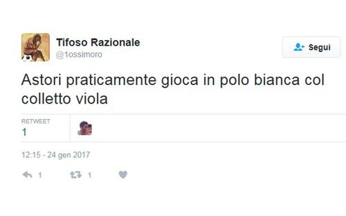 Il fatto che la Fiorentina, in trasferta, giocasse con la casacca bianca e non con quella tradizionale viola, ha fatto il resto, rendendo ancora più "anonimo" il povero Astori. Se non fosse stato per il colletto in pochi avrebbero saputo riconoscere la maglia della Viola