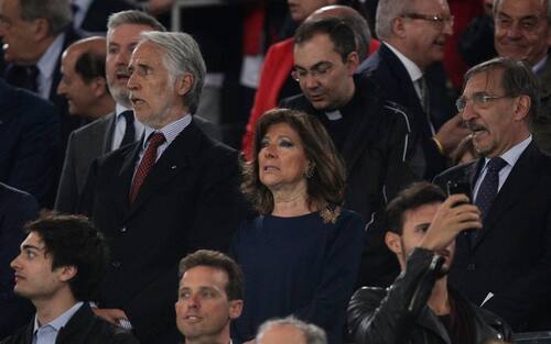 In tribuna il presidente del Senato Maria Elisabetta Alberti Casellati tra il commissario straordinario della Lega di Serie A, Giovani Malagò, e il vicepresidente del Senato Ignazio La Russa