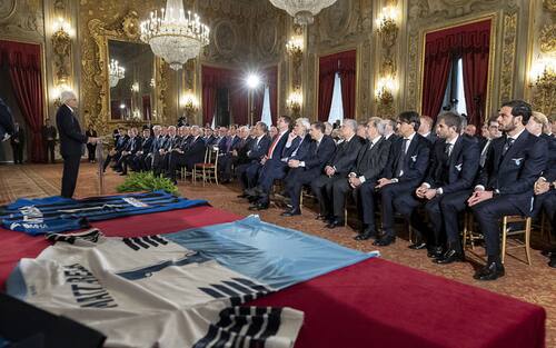 Alla vigilia della finale di Coppa Italia, Atalanta e Lazio, protagoniste all'Olimpico, sono state ricevute al Quirinale dal Presidente della Repubblica, Sergio Mattarella. In dono per lui le maglie personalizzate dei due club, consegnate dai capitani Lulic e Gomez