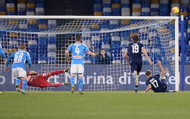 Al minuto 10, sul punteggio di 1-0 per il Napoli, la Lazio ha la grande occasione per pareggiare su calcio di rigore. Dal dischetto va ovviamente Ciro Immobile, che scivola al momento del tiro e calcia fuori