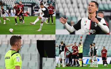 Il calcio italiano è ripartito con la semifinale di Coppa Italia tra Juventus-Milan, match che si è infiammato dopo appena un quarto d'ora. Conti tocca il pallone con un braccio in area, l'arbitro Orsato consulta la Var e assegna il rigore al 16'. In un minuto succede di tutto: prima Ronaldo sbaglia dal dischetto centrando il palo e pochi secondi dopo Rebic si fa espellere dopo un intervento molto duro su Danilo. Ecco il fotoracconto