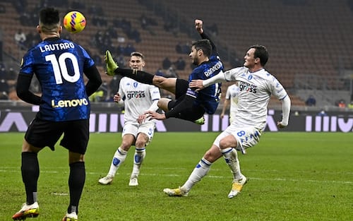 L'Empoli sfiora il colpaccio a San Siro, va sotto 1-0 (gol di Sanchez subentrato all'infortunato Correa) e ribalta la gara nella ripresa grazie a Bajrami e al colpo di testa di Cutrone con deviazione di Radu nella propria porta. Nel recupero una splendida semirovesciata di Ranocchia prolunga la gara ai supplementari. Poi Simone Inzaghi manda in campo Stefano Sensi (in partenza con destinazione Samp) e il centrocampista nerazzurro fa 3-2 con un bel diagonale che qualifica l’Inter ai quarti di finale di Coppa Italia.