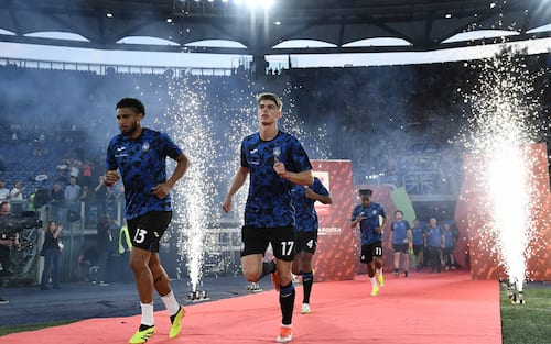 - L'ingresso in campo dei giocatori dell'Atalanta, a partire da De Keleaere che guida l'attacco da falso nueve