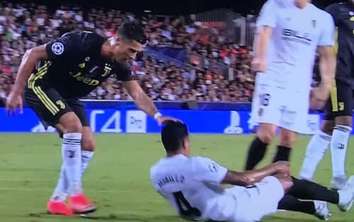 Non mancano le follie di CR7 neppure con la maglia della Juventus: nel 2018 durante il match di Champions contro il Valencia tira i capelli a Murillo