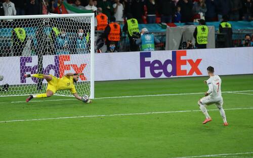 - La prima contro la Spagna: Dani Olmo calcia alto, poi para su Morata. In mezzo due gol spagnoli. Era la semifinale