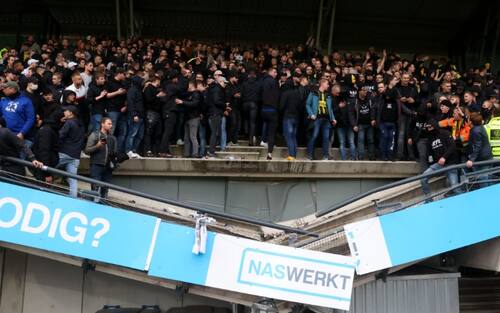 È successo al termine della partita. I tifosi ospiti stavano festeggiando la vittoria (0-1) con i propri giocatori quando c’è stato un cedimento di alcuni gradoni dello stadio. Grosso rischio, ma per fortuna nessun ferito. Anzi, alcuni supporters del Vitesse ne hanno approfittato per avvicinarsi alla squadra...