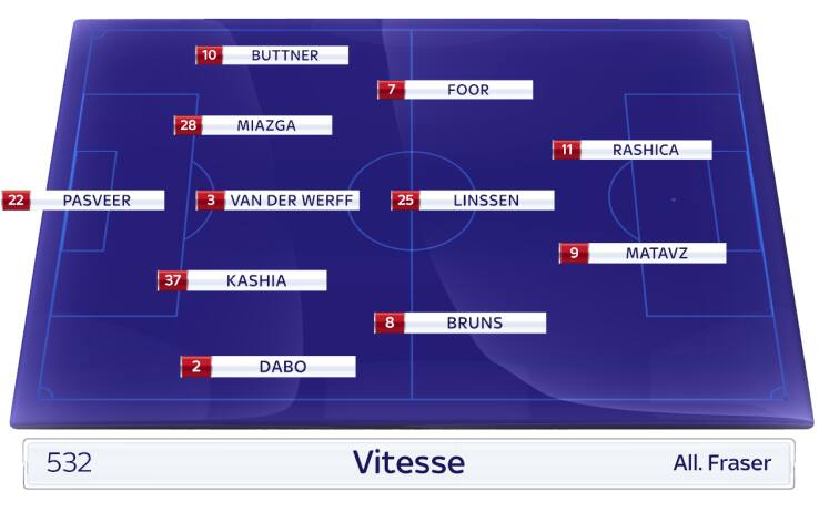 Vitesse (5-3-2): Pasveer; Dabo, Kashia, van der Werff, Miazga, Buttner; Bruns, Linssen, Foor; Rashica, Matavz. Allenatore: Fraser
