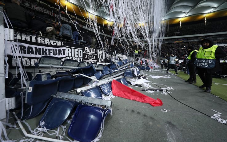 È tutto già deciso nel gruppo H di Europa League, girone che ha riservato la leadership all’Eintracht Francoforte (15 punti) davanti alla Lazio (9) sulla strada dei sedicesimi di finale. Ultimo incontro del raggruppamento che, tuttavia, ammette preoccupazione in materia di ordine pubblico: sono 9mila i tifosi tedeschi previsti nella Capitale, sostenitori protagonisti nella serata di mercoledì del lancio di petardi e danni a un locale. Allerta massima su Roma, d’altronde lo scorso 4 ottobre si erano registrati scontri in Germania tra le due tifoserie. Un precedente che aveva spinto il presidente del club tedesco ad avvertire i propri supporter in vista della trasferta italiana: "Restate a casa, a Roma c’è un gruppo di estremisti. Sono crudeli e difficili da gestire". Alla vigilia del match si sono registrati i primi incidenti con lancio di petardi nel centro della Capitale, soprattutto tra Campo de’ Fiori e il Colosseo: un locale è stato danneggiato e si sono verificate aggressioni in Via Veneto. Da qui la decisione della Questura di predisporre un piano di sorveglianza per convogliare i tifosi dell’Eintracht all’Olimpico attraverso la partecipazione di polizia e steward tedeschi.