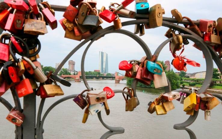 Il Ponte degli innamorati, sul fiume Meno (foto Getty)