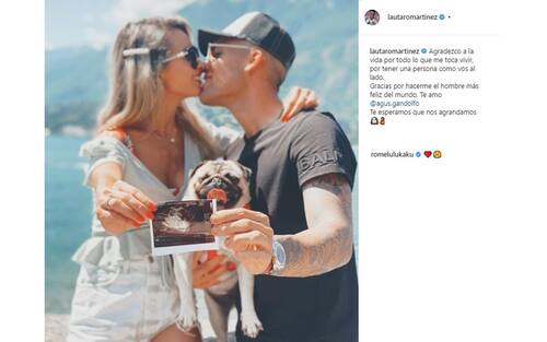 Agustina aveva aspettato la fine di Inter-Bayer Leverkusen, con i nerazzurri in semifinale di Europa League a distanza di 10 anni dall'ultima volta, dai tempi del Triplete, per dare la notizia più bella. Con una una foto della coppia - insieme dal 2018 - e la loro inseparabile cagnolina, e uno scatto dell'ecografia, corredato delle parole molto dolci: "Ti amo con tutta la mia vita, noi tre siamo sempre qui a tifare per te". (Instagram @agus.gandolfo)