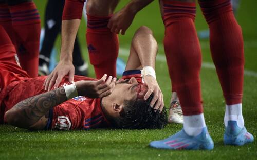 L'impatto con il difensore portoghese ha provocato un taglio in fronte a Paquetà, che perde sangue