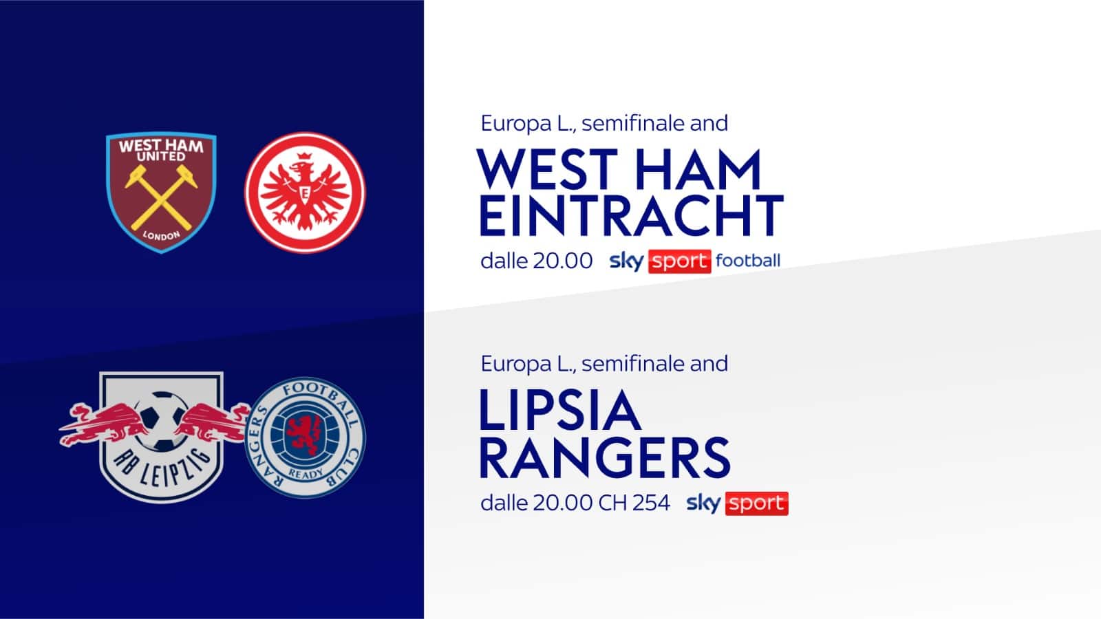 L'Europa League è arrivata alle semifinali: in campo West Ham-Eintracht Francoforte e Lipsia-Rangers. Tutto il programma completo con orari e canali tv