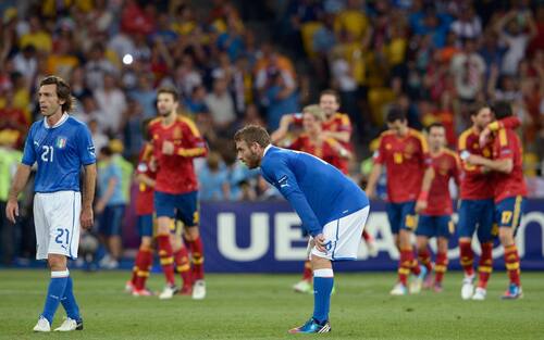 - Il double Mondiale-Europeo è riuscito solo allo spagnolo: l'ex centrocampista azzurro, infatti, deve alzare bandiera bianca nell'ultimo atto dell'1 luglio 2012. La finalissima, disputata a Kiev con entrambi presenti per tutto il match, è a senso unico: i gol di David Silva e Jordi Alba danno il via alla festa delle Furie Rosse, Torres e Mata mettono il punto esclamativo.