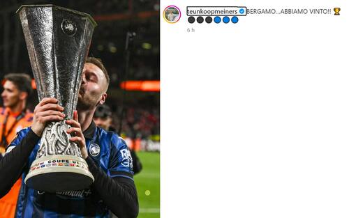 L'Atalanta ha travolto il Bayer Leverkusen 3-0, conquistando l'Europa League, il primo trofeo europeo della sua storia. Tante le reazioni sui social: "L'abbiamo fatto davvero", ha scritto il club. Dediche a Bergamo da parte di Koopmeiners e Hien. E sono arrivati i complimenti anche del presidente del Coni Malagò