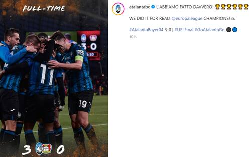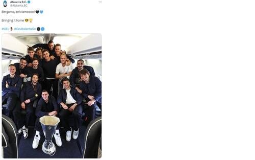 - L'ultimo post sull'account X dell'Atalanta è un messaggio ai tifosi: "Bergamo, arriviamoooo! Bringing it home che tradotto vuol dire 'la stiamo portando a casa' (la coppa, ndr)