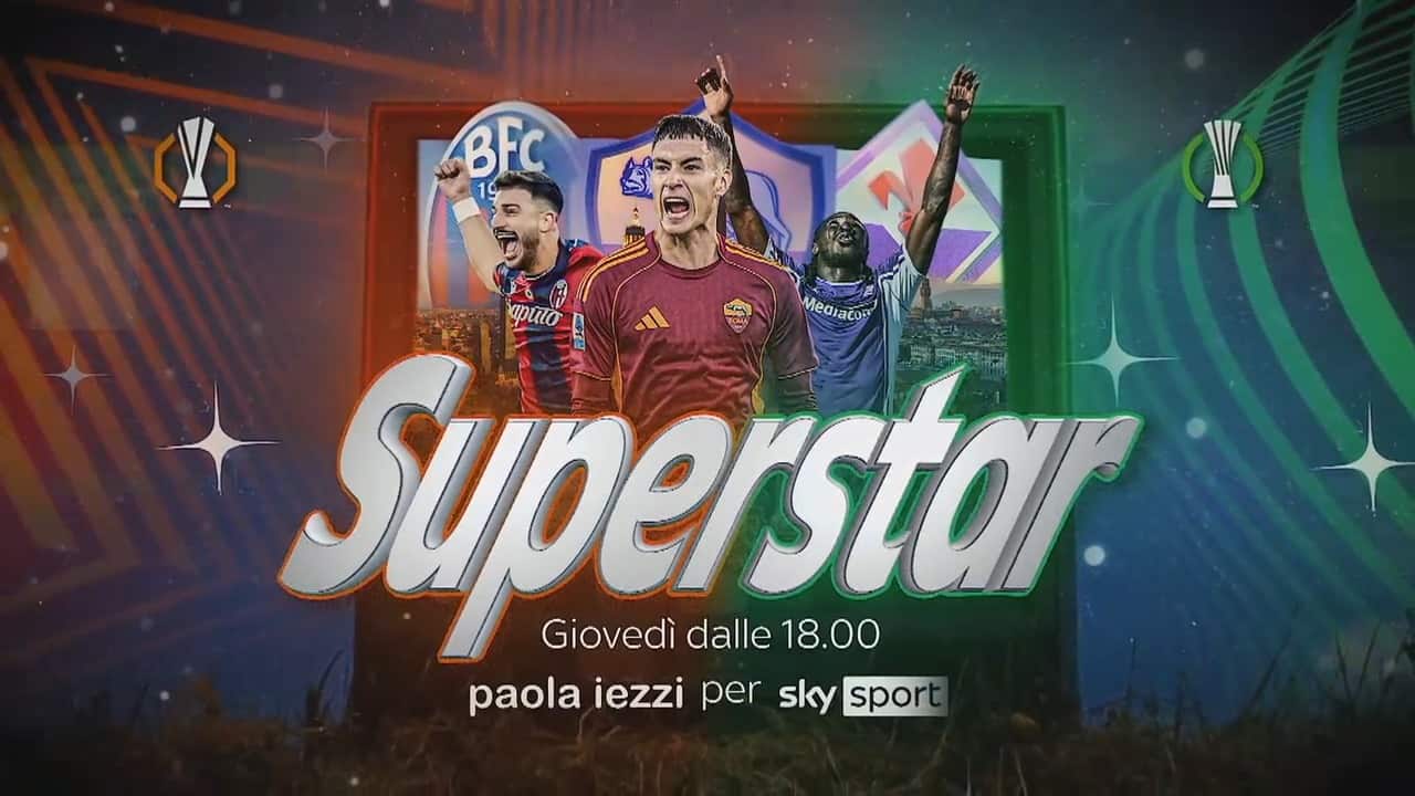 La copertina che apre gli studi di Europa e Conference League è sulle note di ‘Superstar’, il nuovo singolo (Columbia Records / Sony Music Italy) della giudice di X Factor, Paola Iezzi. Con la produzione dei Room9 e di Etta, il brano - scritto da Paola insieme ad Antonio Caputo, Danilo Cortellino, Vincenzo Colella e Leonardo Zaccaria - è una riflessione sulla fragilità nascosta tra i luccichii del successo.