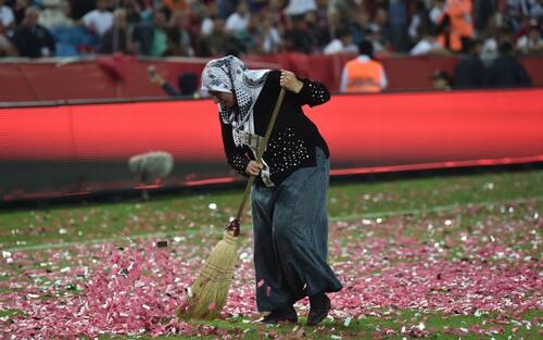 Ramazze in mano, e tanto lavoro. Un team specializzato è dovuto intervenire a fine primo tempo di Turchia-Russia, gara valida per la Nations League. Erano infatti troppi i pezzetti di carta lanciati in campo per la coreografia iniziale dai tifosi di casa -