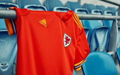 GALLES. Un look classico ispirato alle icone del passato per i "Dragoni", maglia rossa con il nuovo logo stampato sul petto e il colletto che rispetta il design di Condivo 20 promosso da Adidas