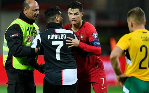 Oltre ai gol e alle giocate per Ronaldo però anche un curioso siparietto con un invasore, entrato in campo vestito con una maglia della Juventus, ovviamente griffata Ronaldo. CR7 ha accolto il tifoso e si è anche prestato a un selfie