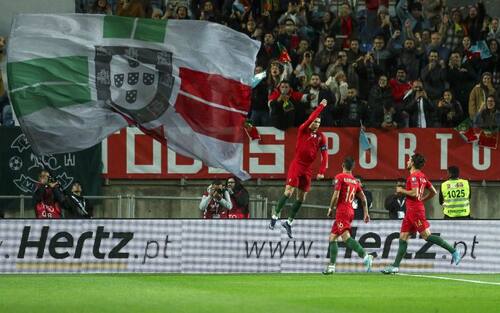 Momento esultanza. Con la tripletta alla Lituania gli hat-trick in maglia portoghese sono diventati 9