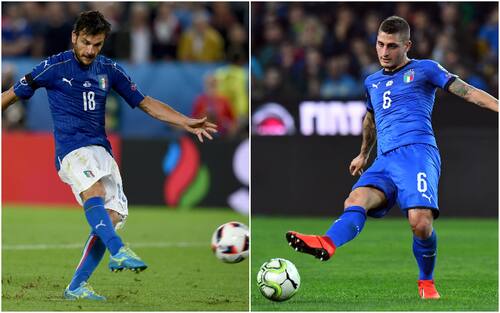 PAROLO VS VERRATTI. Due cosiddette mezz'ali, o meglio, centrocampisti interni. Stesso ruolo ma anche qui funzioni differenti. Parolo garantiva al centrocampo di Conte quell'aggressività necessaria alla riconquista della palla, Verratti è imprevedibilità e qualità in un'Italia che si sta evolvendo anche nel gioco per cercare di tornare a essere dominante