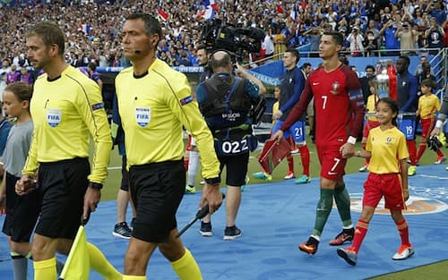 Il 10 luglio i lusitani si presentano allo Stade de France al cospetto dei favoritissimi "Galletti" padroni di casa, allenati da Didier Deschamps, che avevano fatto fuori la Germania in semifinale grazie alla doppietta di Antoine Griezmann.