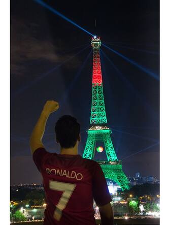 Anche la Tour Eiffel deve inchinarsi a Cristiano e ai colori della sua terra.