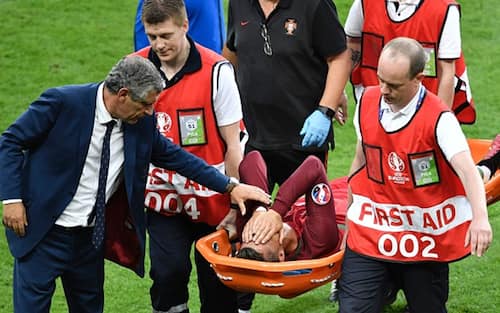 Al 25', dopo oltre 17 minuti di speranze e tentativi, vani, deve arrendersi: il Portogallo dovrà giocare la finale senza il suo capitano. Al suo posto entra l'ex interista Ricardo Quaresma, che era stato più volte determinante nel cammino verso la finalissima.