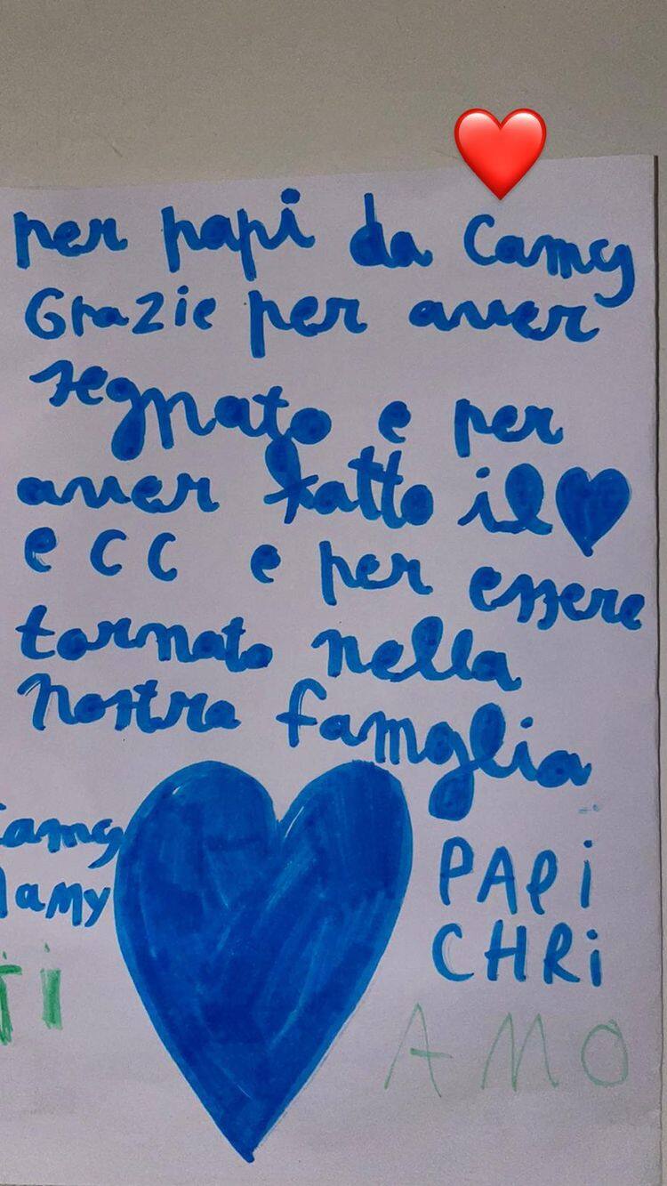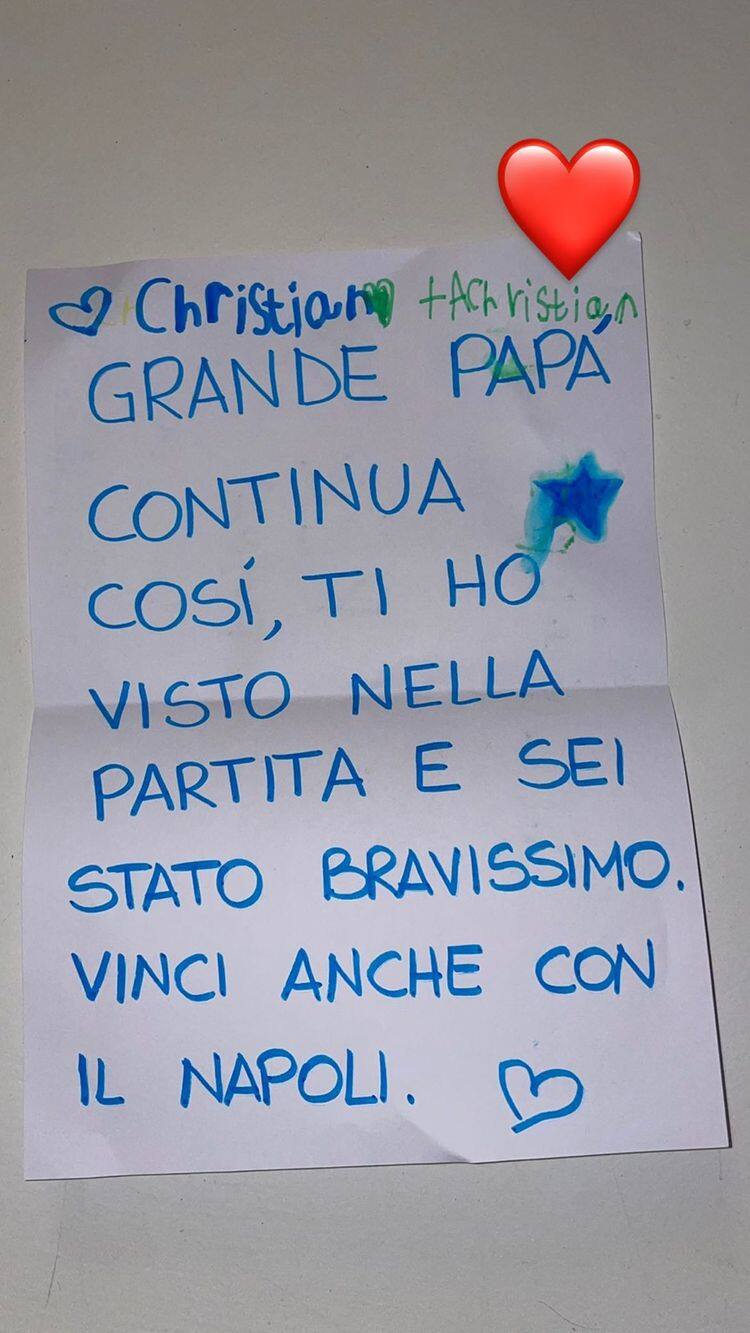 Carmine Insigne, 8 anni: "Per papà, da Carmy. Grazie per aver segnato e per aver fatto il cuore e C C e per essere tornato nella nostra famiglia"