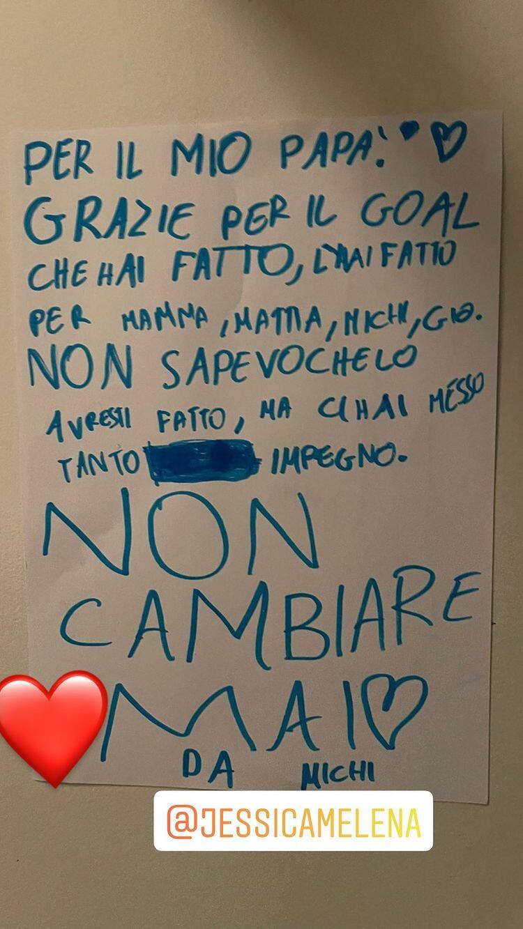 Michela Immobile, 8 anni: "Per il mio papà. Grazie per il goal che hai fatto, l'hai fatto per: mamma, Mattia, Michi, Gio. Non sapevo che lo avresti fatto ma ci hai messo tanto impegno. Non cambiare mai"