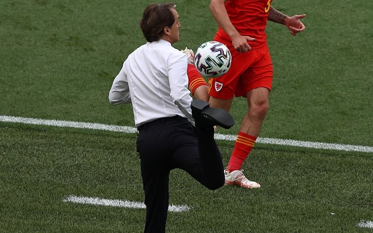 Mancini sa ancora come si fa, stop di tacco pazzesco durante Italia-Galles. VIDEO