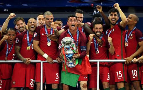Ancora in una finale del torneo, stavolta allo Stade de France. Lanciatissimi i Bleus di Deschamps dal percorso quasi perfetto, meno lineare la marcia del Portogallo che supera il girone da terza e supera a fatica gli ostacoli Croazia, Polonia e Galles. Ma il 10 luglio 2016, ai supplementari, a decidere è il quasi sconosciuto Éder