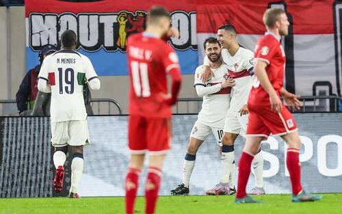 - PORTOGALLO (5-3-2): Rui Patricio; Dalot, Antonio Silva, Ruben Dias, Danilo, Nuno Mendes; Bruno Fernandes (75' Otavio), Joao Palhinha (87' Diogo Jota), Bernardo Silva (64' R. Neves); Ronaldo (64' G. Ramos), Joao Felix (75' Leão). All: Martinez
