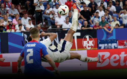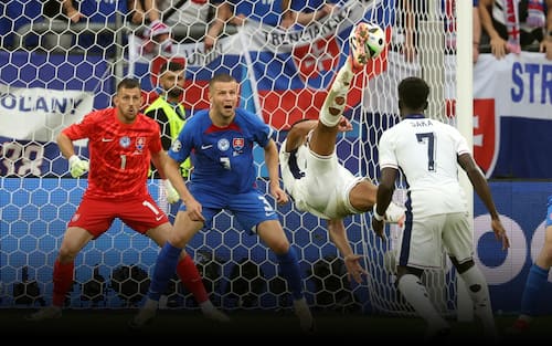 Bellingham, il gol in rovesciata al 95' di Inghilterra-Slovacchia: fotosequenza e video