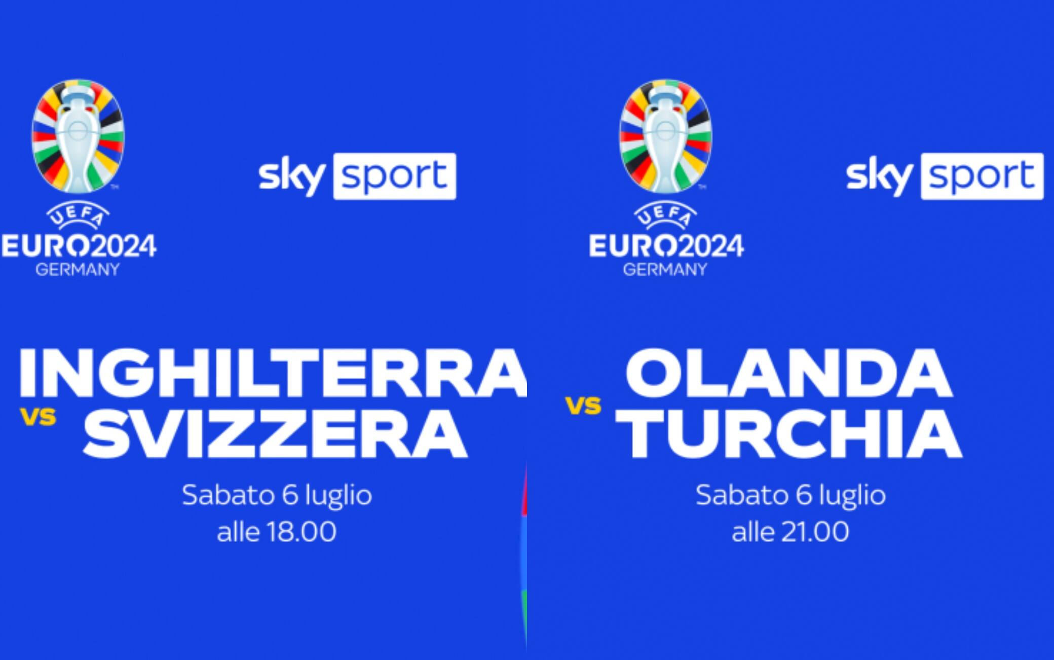 Quarti di finale da non perdere oggi, sabato 6 luglio, su Sky e in streaming su NOW. Alle 18 Inghilterra-Svizzera sarà visibile in diretta su Sky Sport Uno, Sky Sport Calcio, Sky Sport 4K, Sky Sport 251 e in streaming su NOW con la telecronaca di Massimo Marianella e il commento di Beppe Bergomi. A bordocampo Gianluigi Bagnulo e Francesco Cosatti. Alle 21 invece l'Olanda scenderà in campo contro la Turchia, live su Sky Sport Uno, Sky Sport Calcio, Sky Sport 4K, Sky Sport 251 e in streaming su NOW. Telecronaca di Riccardo Gentile, commento di Giancarlo Marocchi. A bordocampo Paolo Aghemo e Massimiliano Nebuloni. Inoltre, da non perdere alle 14 'EuroGoleador', in studio: Sara Benci e Fabio Caressa. Dalle 17 c'è 'Sky Euro Show' in compagnia di Mario Giunta, Angelo Ogbonna e Paolo Condò. Infine alle 20 e alle 23 si rinnova 'Sky Euro Show' con Mario Giunta in studio insieme ad Angelo Ogbonna, Paolo Condò e Giorgio Chiellini in collegamento da Los Angeles.