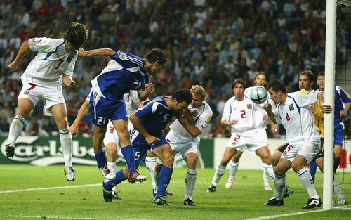 - Euro 2004 è ricco di nazionali fortissime: l'Italia che due anni dopo vincerà il Mondiale, l'Inghilterra di Beckham e Rooney, di Lampard e Gerrard. E ovviamente anche la Francia, campione in carica. Quella di Zidane e Henry, Trezeguet e Thuram, Makélélé e Pires. Ma nei quarti vince la Grecia, 1-0. Manco a dirlo, segna Charisteas