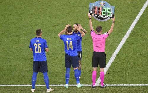 Ben 25 giocatori scesi in campo (su 26!) a questi Europei: nessuno come l'Italia e la scelta di Mancini conferma la sua volontà di avere una squadra in cui tutti si sentano titolari. Certo, parte del “merito” è anche della sostituzione tra Donnarumma e Sirigu contro il Galles, al minuto 89, con cui Mancini ha voluto premiare il secondo portiere azzurro. E prima di lui erano entrati in campo anche Castrovilli (87’), Raspadori (75’) e Cristante (75’). L’unico a non aver ancora mai giocato un minuto nel gruppo azzurro resta Meret, il terzo portiere.