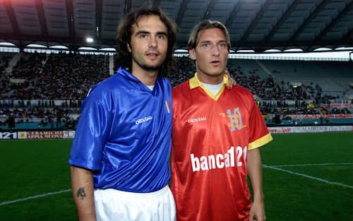 - Lo storico capitano giallorosso non ha mai nascosto di essere cresciuto nel mito del "Principe" Giannini. L'ambizione di un tempo? "Essere come lui - disse a Vanity Fair -, il capitano della Roma della mia giovinezza. Lo identificavo come il principe di Roma, il numero 10 per eccellenza. Quando mi convocarono in prima squadra chiesi se era possibile dividere la stanza con Peppe. Me lo concessero. Era un sogno a occhi aperti". Qui i due, insieme, nel giorno dell'addio al calcio di Giannini