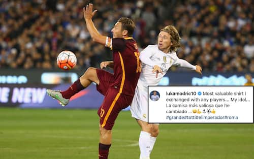 - L'ammirazione del Pallone d'Oro 2018 per l'ex capitano giallorosso era nota. Dopo un'amichevole Roma-Real del 2014 il croato postò su Instagram la foto della maglia 10 giallorossa (in realtà quella bianca da trasferta) scrivendo: "La maglietta più preziosa mai scambiata con un calciatore, quella del mio idolo"