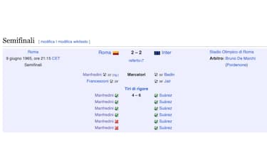 Quindi si torna al primo caso di sempre della storia dell'Inter ai rigori. Un precedente talmente clamoroso che, a guardarlo oggi, sembra solo una svista sul tabellino riportato da Wikipedia. Guardate lo specchietto qui in basso della semifinale di Coppa Italia del 9 giugno 1965 Roma contro Inter. Notate qualcosa di insolito? Sei rigori, e non cinque, calciati tutti dagli stessi due giocatori.