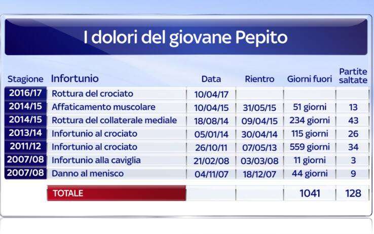 Ma poi, sarà davvero solo sfortuna? Si può ancora parlare di cattiva sorte quando lo stesso fenomeno si ripete da anni? Strano che nessuno sia riuscito a capirci qualcosa. Nel 2017. Il record di Roberto Baggio che doveva eguagliare non era quello degli infortuni…Giuseppe, tu pensi sia solo sfortuna? Perchè se davvero fosse cosi, allora mettiti il cuore, e le ginocchia, in pace.