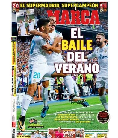 Sui principali quotidiani sportivi spagnoli viene dato ampio spazio alla vittoria della Supercoppa spagnola del Real Madrid, capace di battere il Barcellona sia all'andata che al ritorno. I blaugrana si consolano però con il mercato, visto l'imminente arrivo di Paulinho
