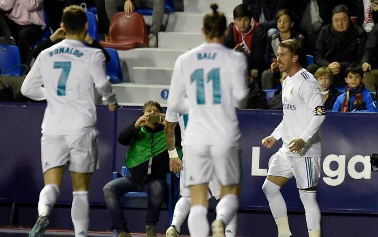 Inizia bene la gara il Levante, aggressivo nel pressing e frizzante nella manovra offensiva. Non è da meno il Real, concentrato fin dall’avvio e pronto subito ad approfittare di ogni minimo spazio. È Marcelo il primo a provarci, dopo una serie di rimpalli e scambi in area con Benzema, ma prende malissimo la sfera col sinistro e per sua fortuna trova una deviazione in angolo da parte della difesa. Proprio dal corner nasce il vantaggio del Real: Sergio Ramos spinge di testa e Benzema tenta invano di sfiorare la sfera con il piede in allungo. Il tocco non arriva, ma il movimento inganna il portiere Oier che non riesce a evitare l’1-0 a favore Real. Per il difensore arriva finalmente la prima gioia personale in campionato. La rete subita toglie qualche sicurezza al Levante, sempre composto in difesa ma poco incisivo in avanti. I ragazzi di Zidane non sono ancora quelli dei giorni migliori, per cui preferiscono non scoprirsi e colpire, nel caso, in contropiede. L’asse preferito dai Blancos è sempre quello Marcelo-Benzema, con quest’ultimo che viene frenato in uscita dal portiere dei rossoblù. E Ronaldo? Il portoghese fa movimento, riesce anche a crearsi lo spazio per un paio di conclusioni ma non preoccupa più di tanto gli avversari. Il Levante mostra tutte le sue difficoltà in fase d’attacco e riesce a costruirsi la prima occasione solo al 39’, quando un destro dalla distanza di Ivi che termina a lato. Al 42’ poi, in un momento di apparente tranquillità, Lukic inventa una grande verticalizzazione per Morales che coglie la difesa del Real impreparata, Navas salva sull’attaccante ma non può nulla sulla ribattuta di Boateng, che di piatto, realizza l’1-1 e porta le squadre all’intervallo in situazione di parità.